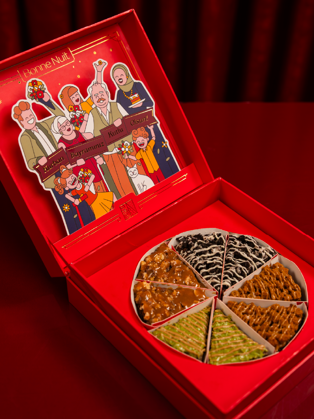 Bonne Nuit tarzında bayram hediyesi. Enfes brownie lezzetinin dubai çikolatası, oreo parçacıkları, lotus dolgu ve krokanla buluşması. Tüm Türkiye'de!